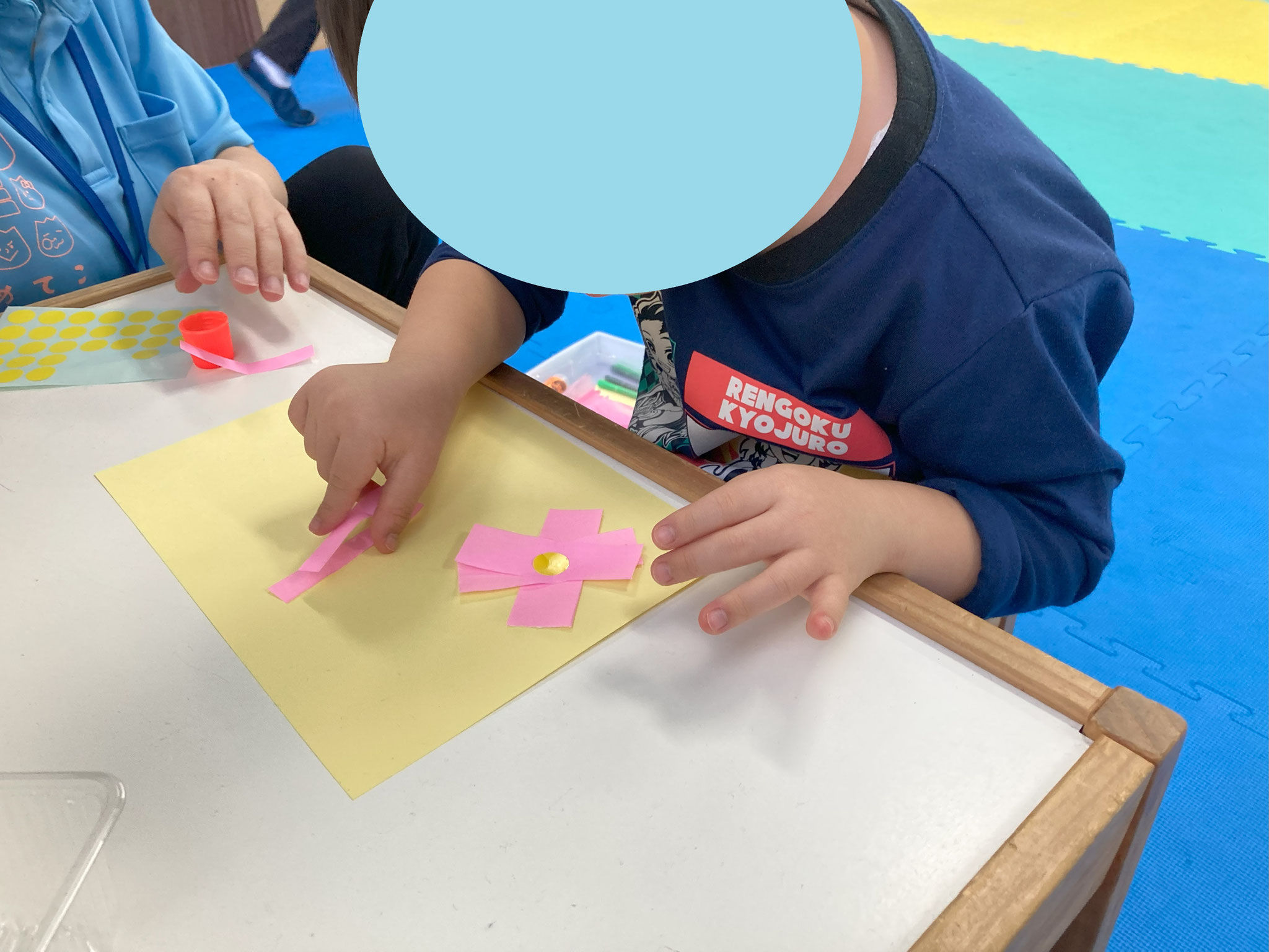 こんにちは。 今日は中秋の名月です!昼間は雲が多い空ですがキレイにお月様が見られるでしょうか。夜空を見上げてみたいと思います☆ 今回のブログはコスモス作りのご紹介です。 ピンクの折り紙をのりで貼るを数回繰り返し、真ん中に黄色のシールを貼って、色鉛筆で好きなように茎や葉っぱを書いて完成です(^^)/ 可愛いコスモス畑が出来上がりました♪