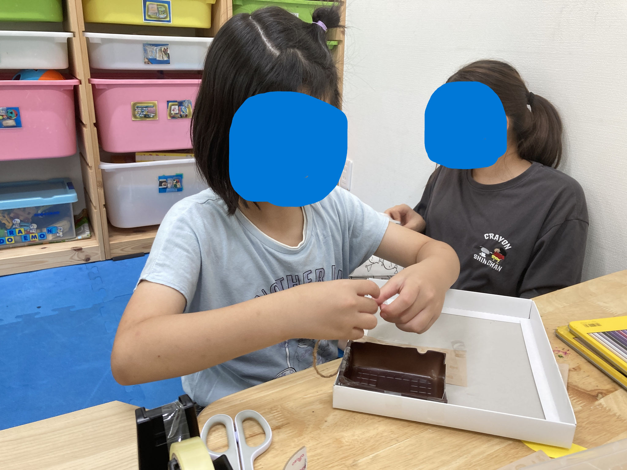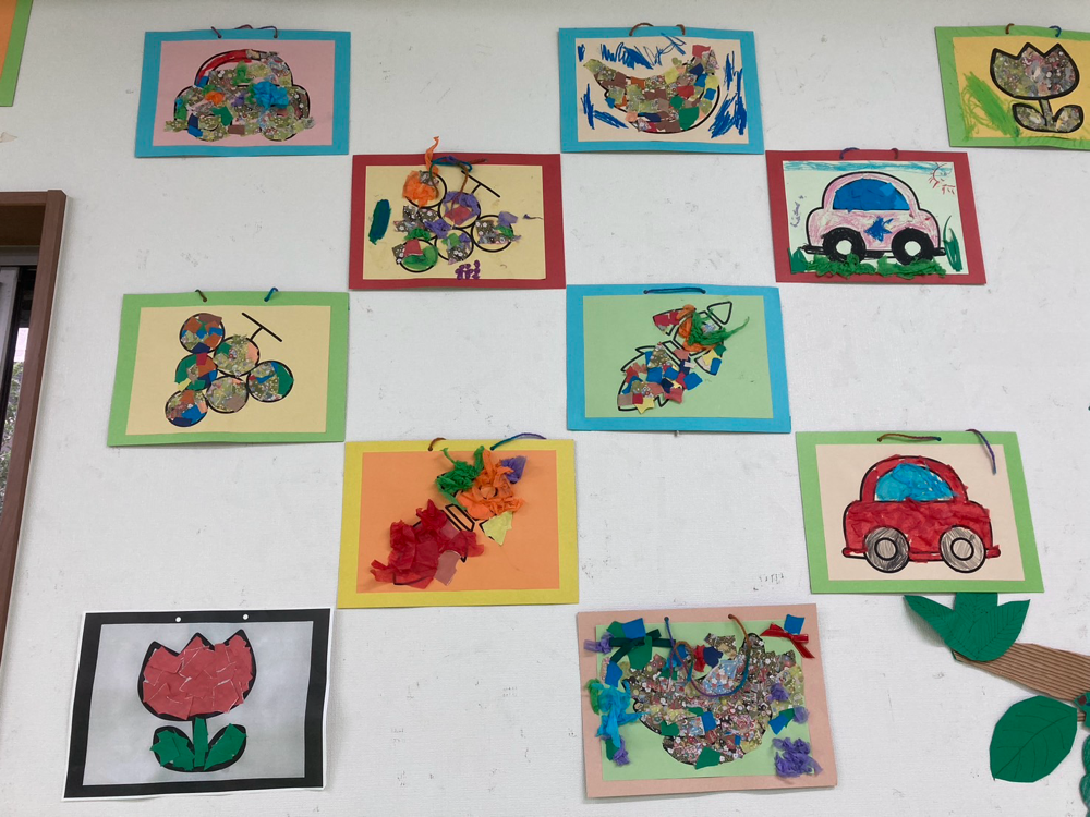 9月の工作では、ちぎり絵を行いました。 あらかじめ用意された枠に色紙を思い思いに貼っていきます🌸 ステキな作品がたくさん完成いたしました♡