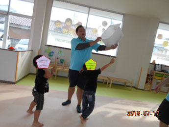 指定された色だけ拾って投げてほしいんだけど・・・楽しくなっちゃって、だれが何色なんだかもう…(笑) ややカオスな…です。