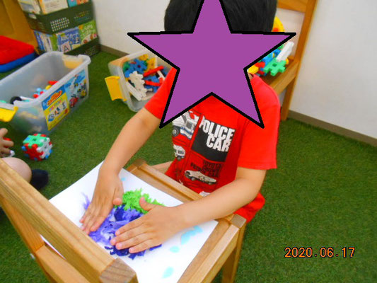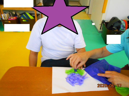 雨に濡れるあじさいが美しい季節。教室でもお花紙を使ってあじさい制作を行いました。