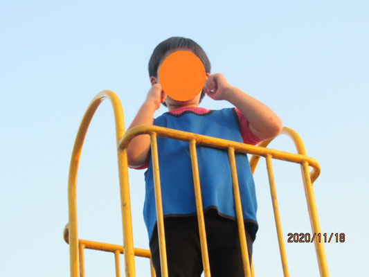 高いところが好きですべり台の上から俯瞰している子もいます☆
