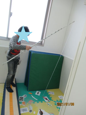 『さかな釣りをしたい』と子ども達が言い、新聞紙、毛糸、磁石、クリップを準備!