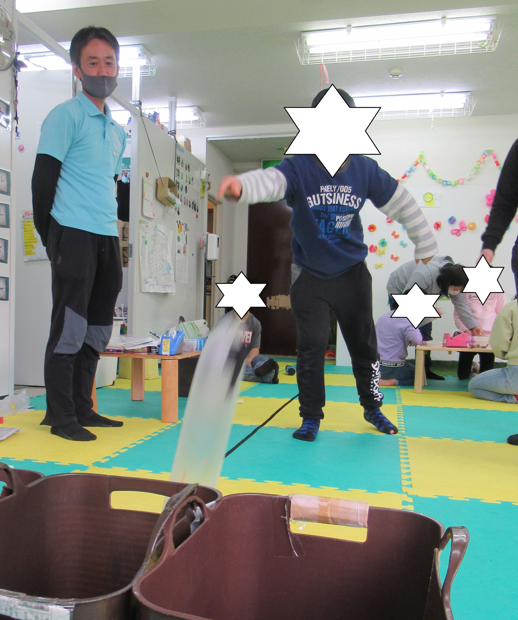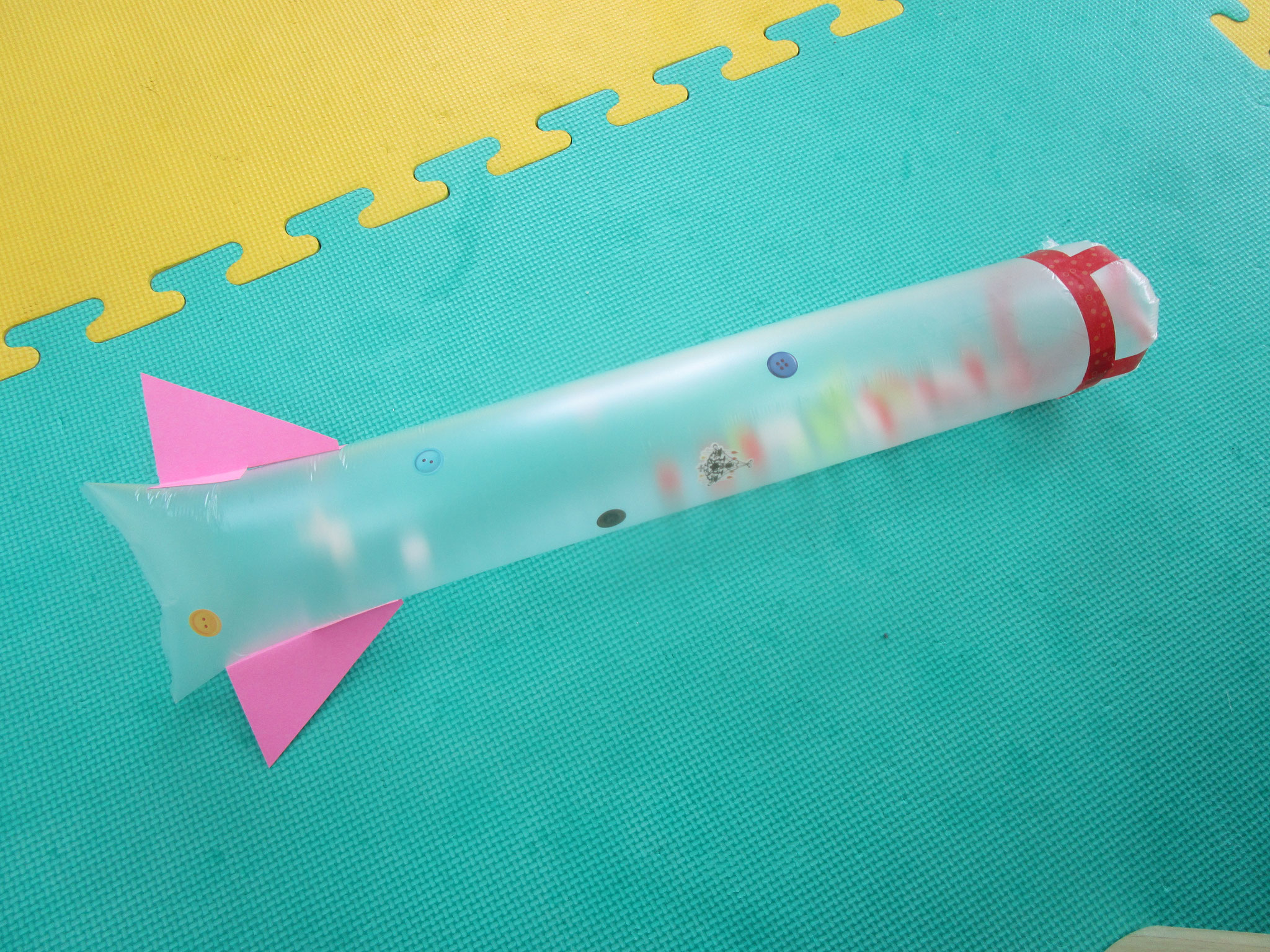 春休み工作、今日は『傘袋ロケット』を作りました。