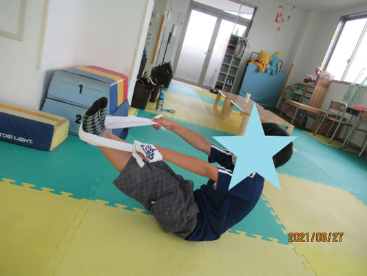 普段はまねっこ体操で体幹を中心に鍛えますが、日曜日はもう1歩踏み込みタオルを使った体操を行いました。