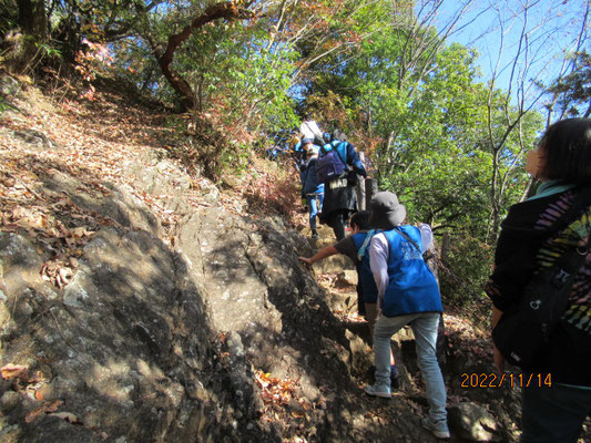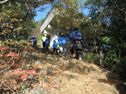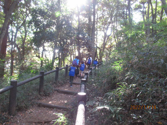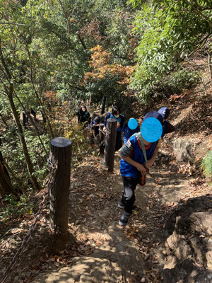 始めは意気揚々と登っていた子どもたちも、少しずつ傾斜が急になると歩みもゆっくりになっていました。