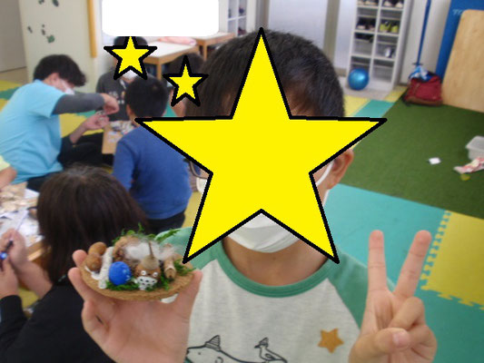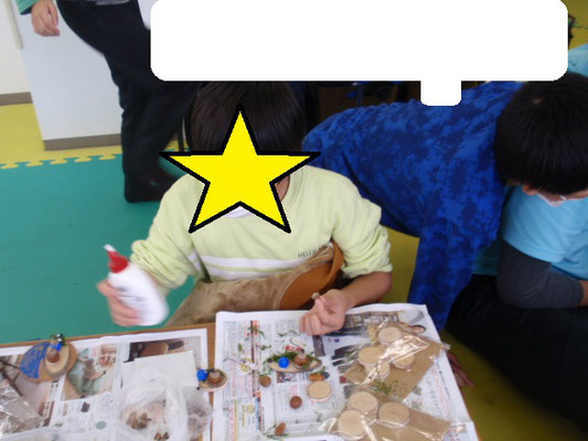 様々な形のどんぐりを大量に集め満足気な様子でしたが1人の子が「どんぐり制作したい」と言ってくれたのがきっかけでした。
