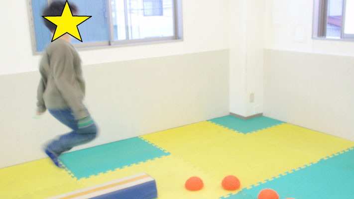 子ども達は風船タッチを目的にサーキットを行ってくれたので嫌だと言っていた縄跳びも難なくこなしてくれました。また平均台の上で行ったので真っすぐ跳ぶことで縄止めジャンプや前跳びがキレイにできる姿もありました。