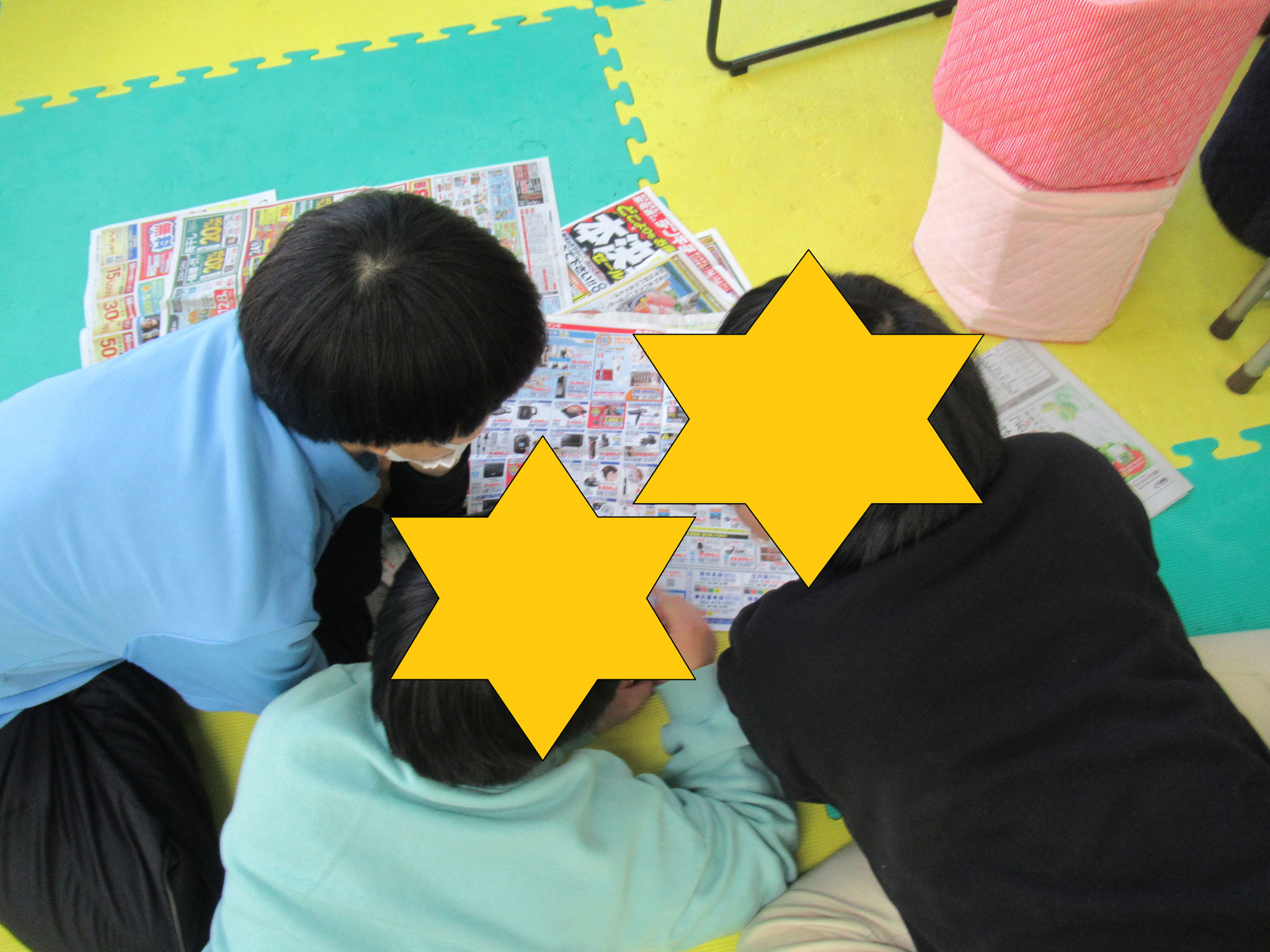 チラシや子ども銀行のお金を使って色々なお買い物・銀行ごっこを楽しんで