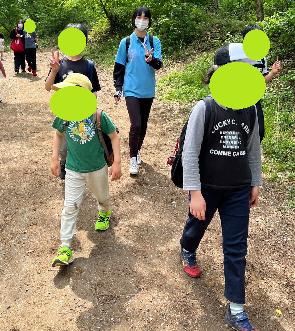 楽しいながらも「虫が!!!!!!!!!」「葉っぱが!!!!!!!!!」と大騒ぎ(笑)