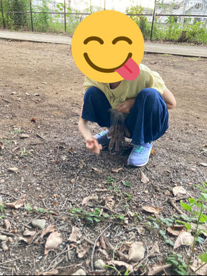 鬼ごっこをして楽しく遊んでいる時に足元を見ると沢山のどんぐりが落ちていて、鬼ごっこの後はどんぐり拾いをしました!大量のどんぐりを拾ってとても嬉しそうです(^^♪✨