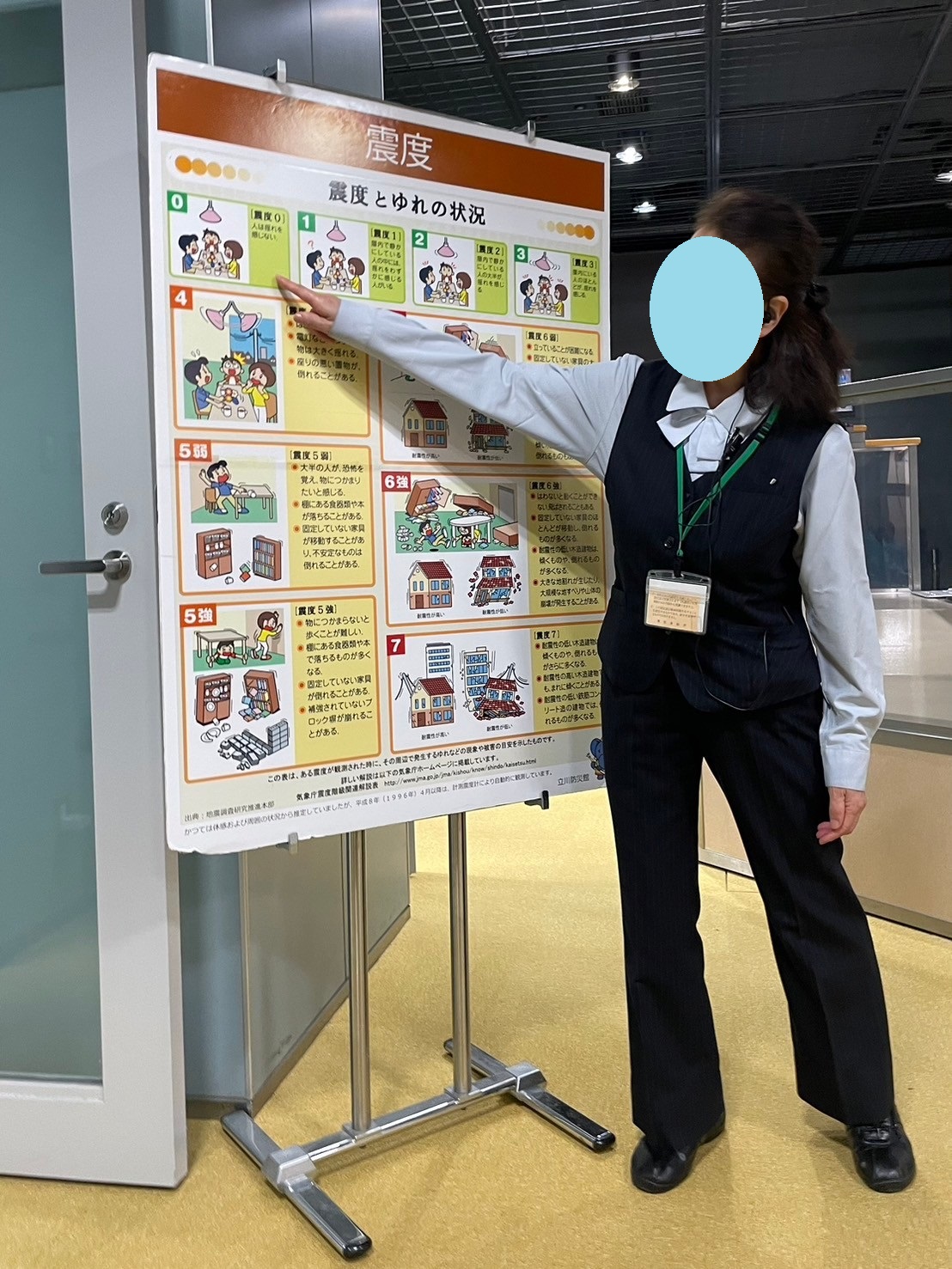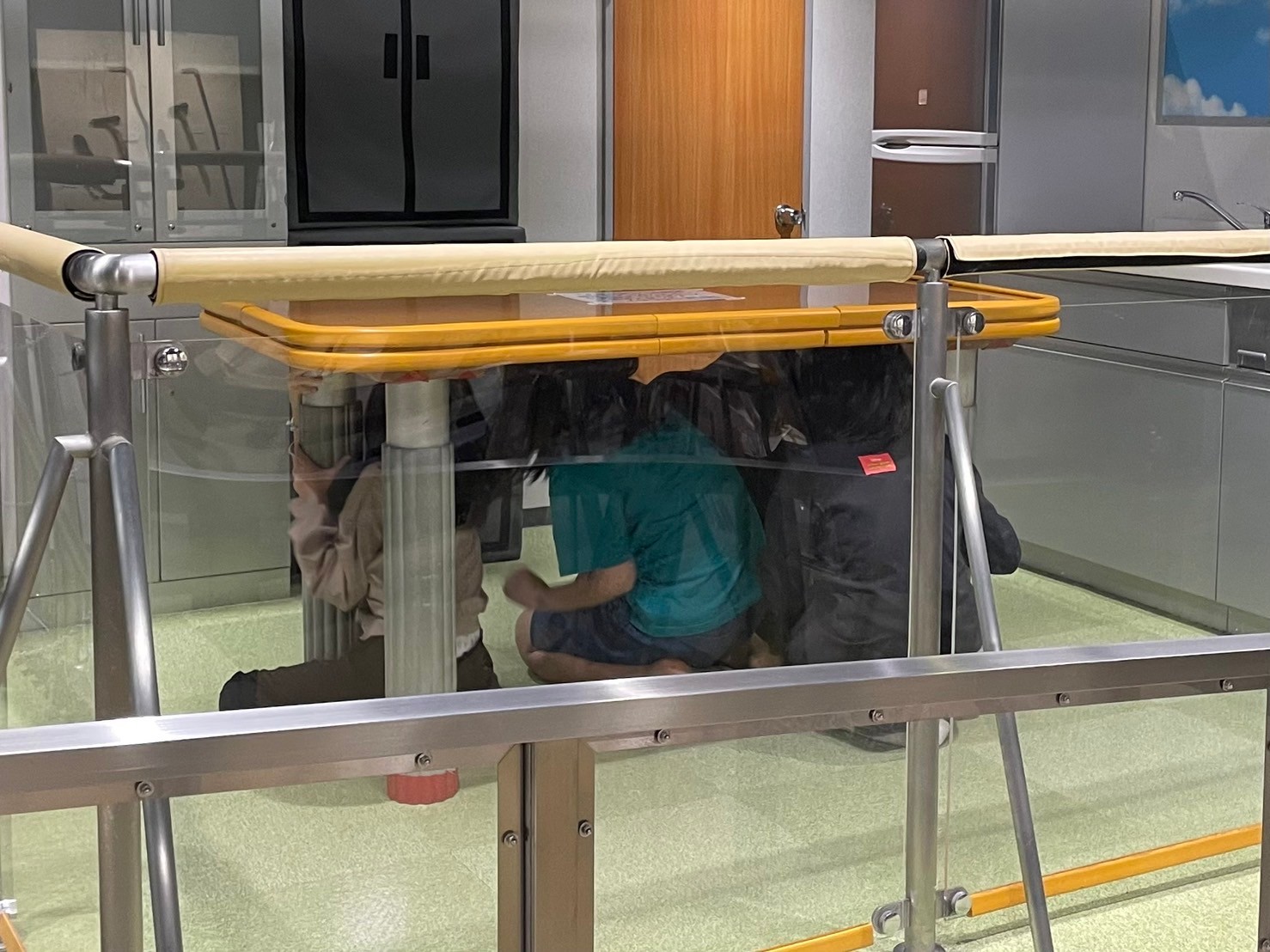 地震体験では、地震が起きても慌てないように普段の心構えやいざという時の行動、