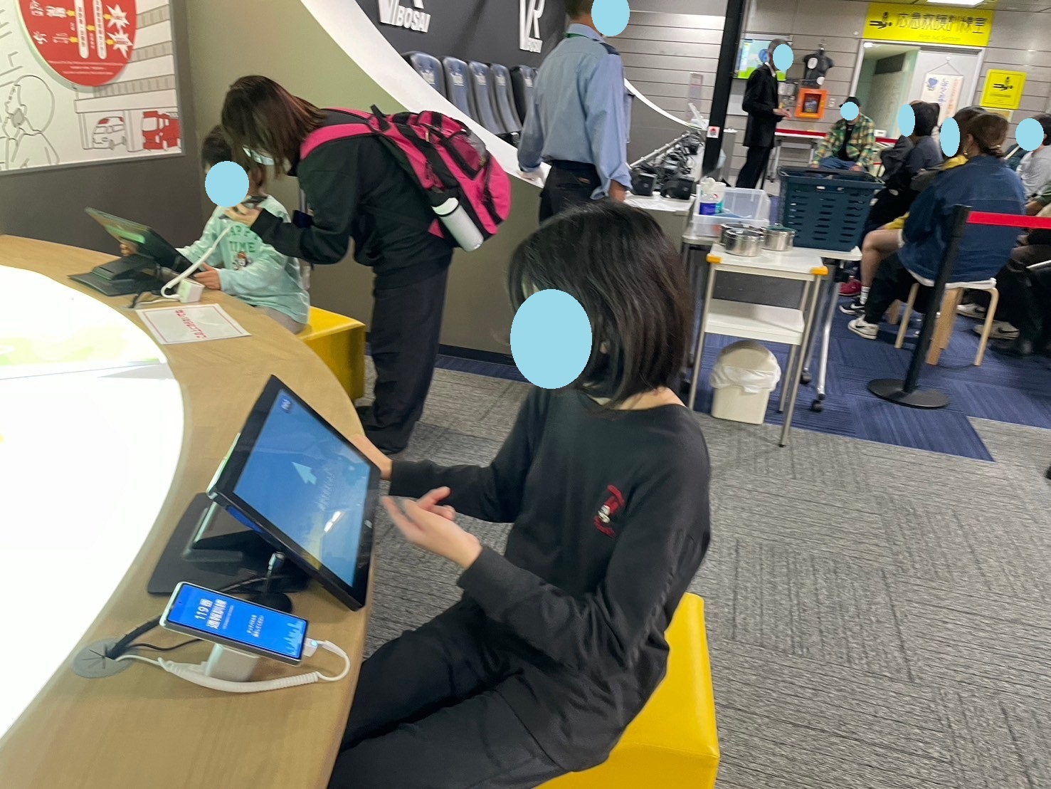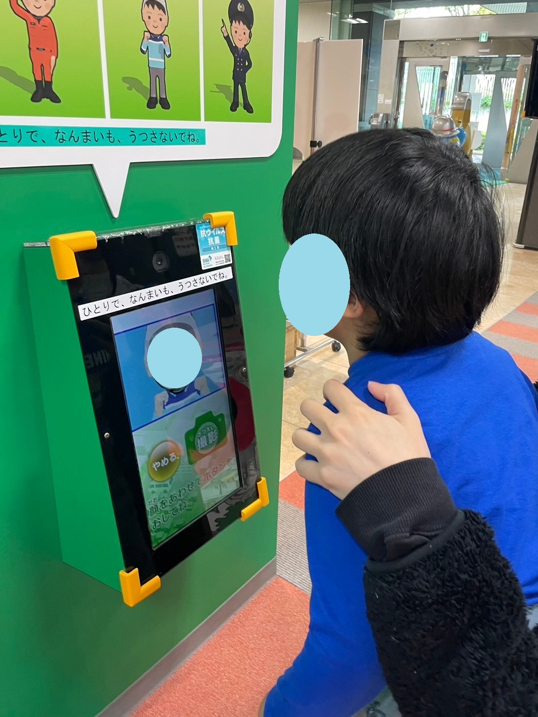 ここでは消防服を着たり、自分の顔をスキャンし街を守る子ども消防隊になりきっていました。