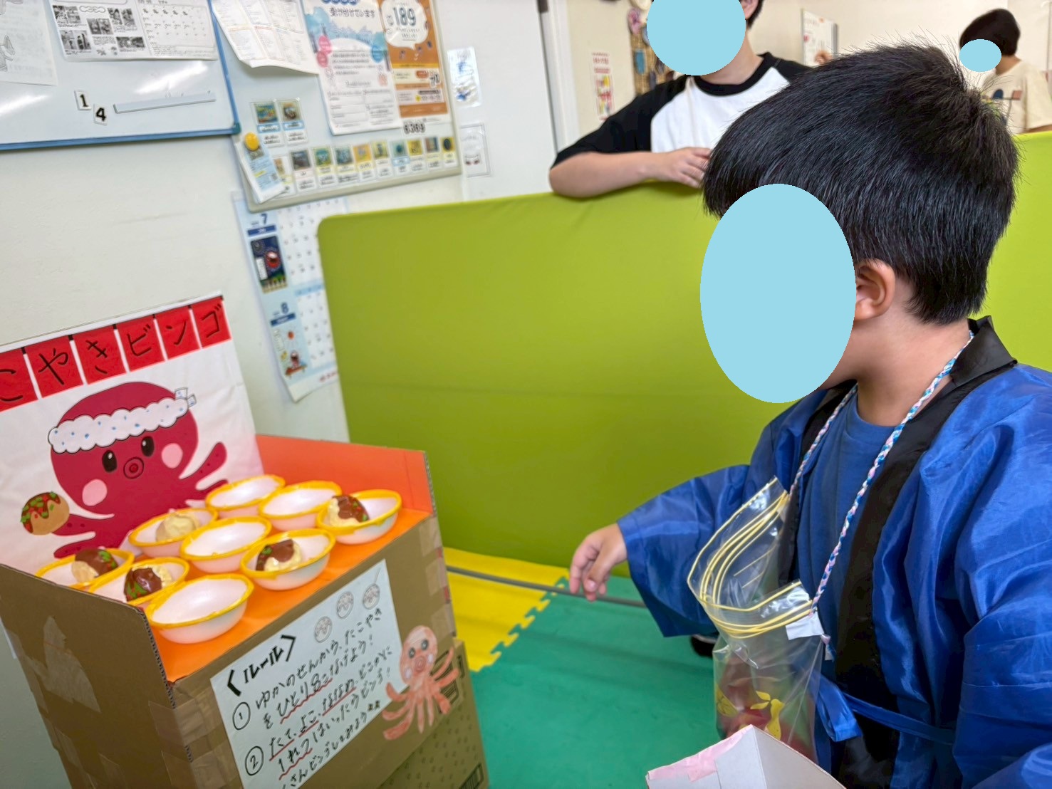 本物そっくりのたこ焼きを投げてビンゴを狙う