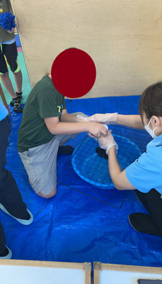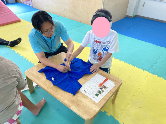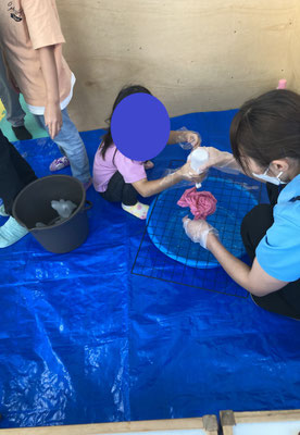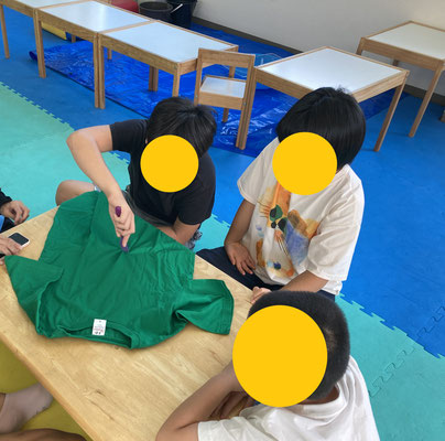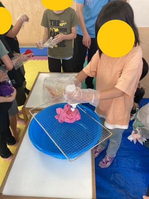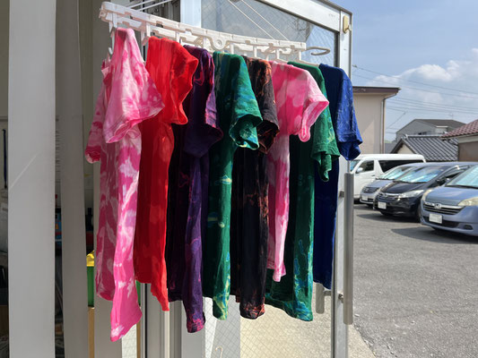 Tシャツの色によっても抜けたときの色が全然違うので、みんなとってもいいタイダイTシャツができました。