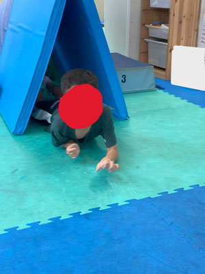 いざ運動遊びの時間になると気合十分。「よっし!」と意欲的に取り組んでくれる姿がありました。またサーキットの中には職員よりトンネルの内容も取り入れた事を伝えると「うんうん。面白いじゃん。」と受け入れとり組む姿がありました。