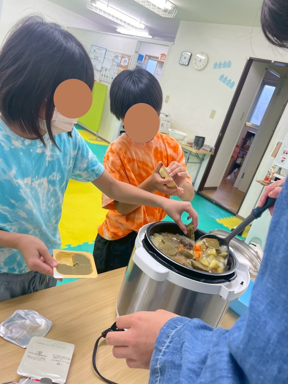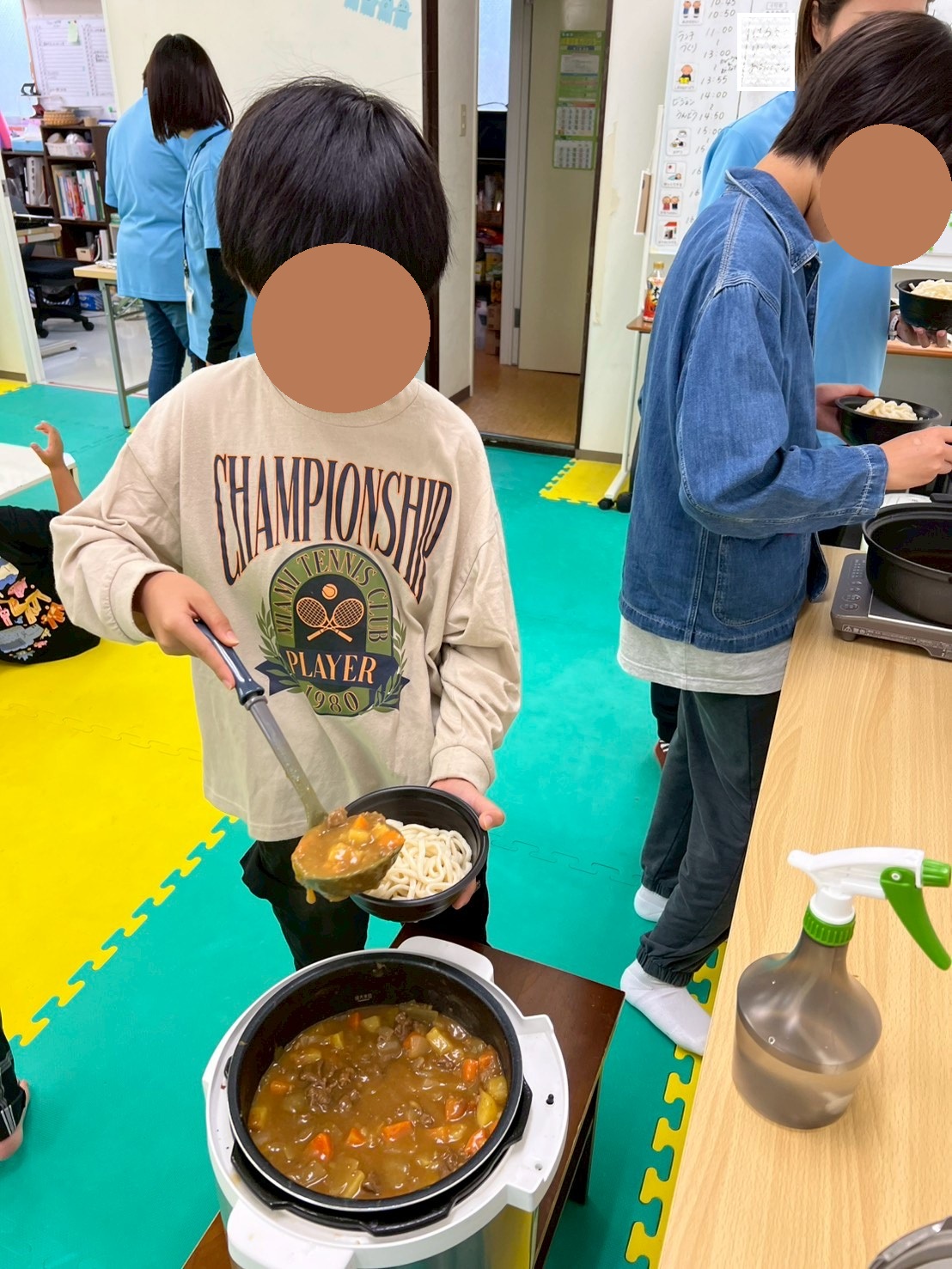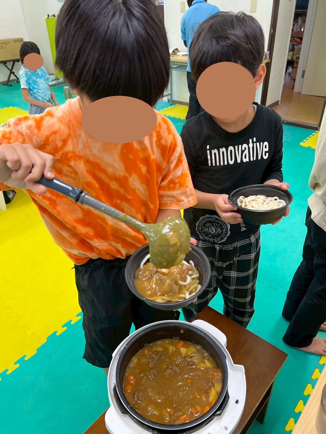 カレーが煮えて完成したら、みんなで盛り付けです!!!