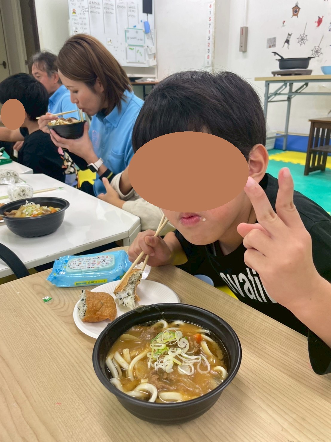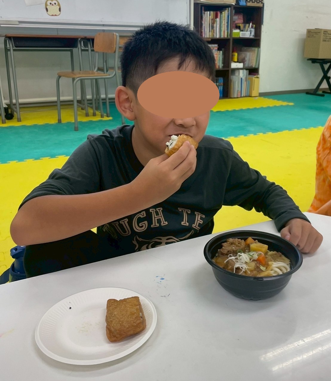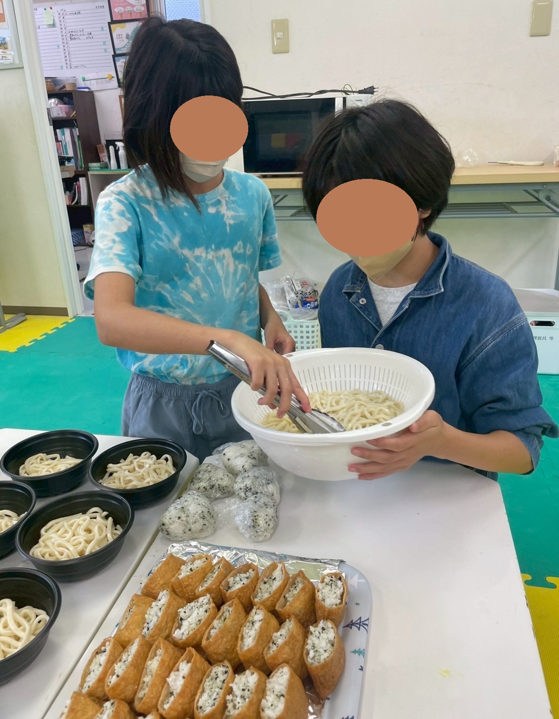 カレーが出来上がるまでに うどんの温め、おいなりさん作り。