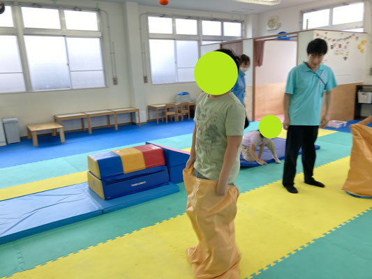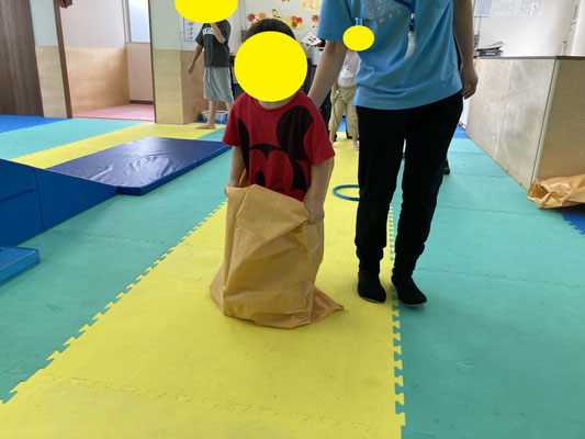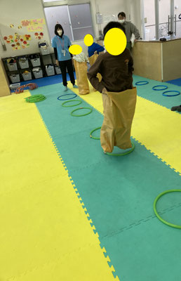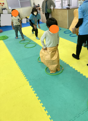 土曜日と、月曜日の運動に「袋跳びジャンプ」を行いました。