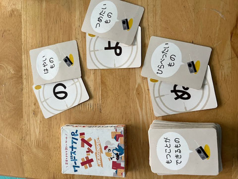 「〇から始まる~なもの」という、頭文字とお題に合わせて言葉を考えるゲームです。