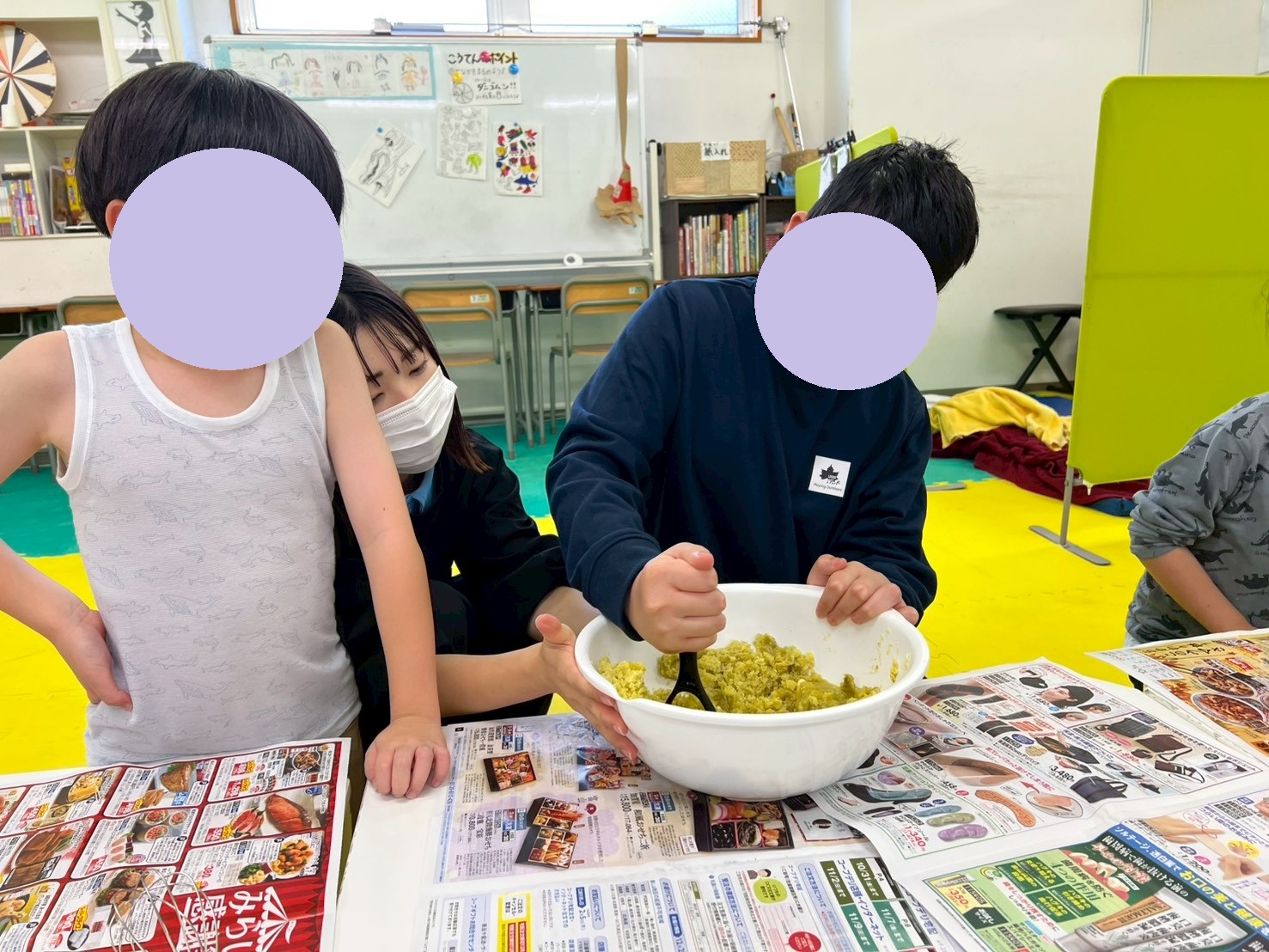 スイートポテト初挑戦の児童が数名いましたが、1口味見をし、美味しいとわかると、たくさん食べてくれました(^^♪